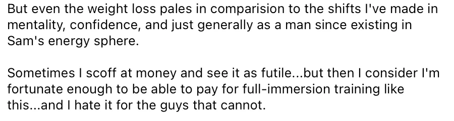 "Average coaches teach fundamentals - Sam teaches you how to become a man"