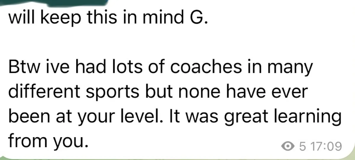 Body Language Solution is for you to do in your own time, but for people who want extra support, we offer the world's greatest men's winner's club - your personal Telegram support group for accountability, mentorship, answer all your questions
