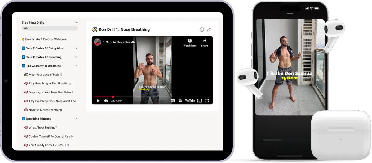 The first teaches you the nuances of how to control your own breath and automatic nervous system - it contains 6 modules totalling 60 minutes. There are 6 lifechanging drills which can be done extremely quickly and easily.